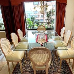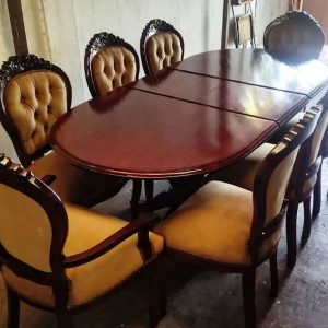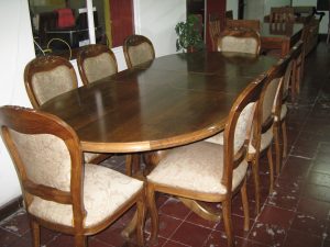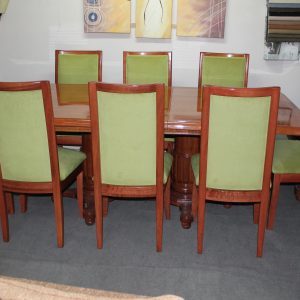 8 elegantes sillas modelo medallón, en madera de lenga nativa, respaldo enjuncado y la madera trabajada en alvallalde.